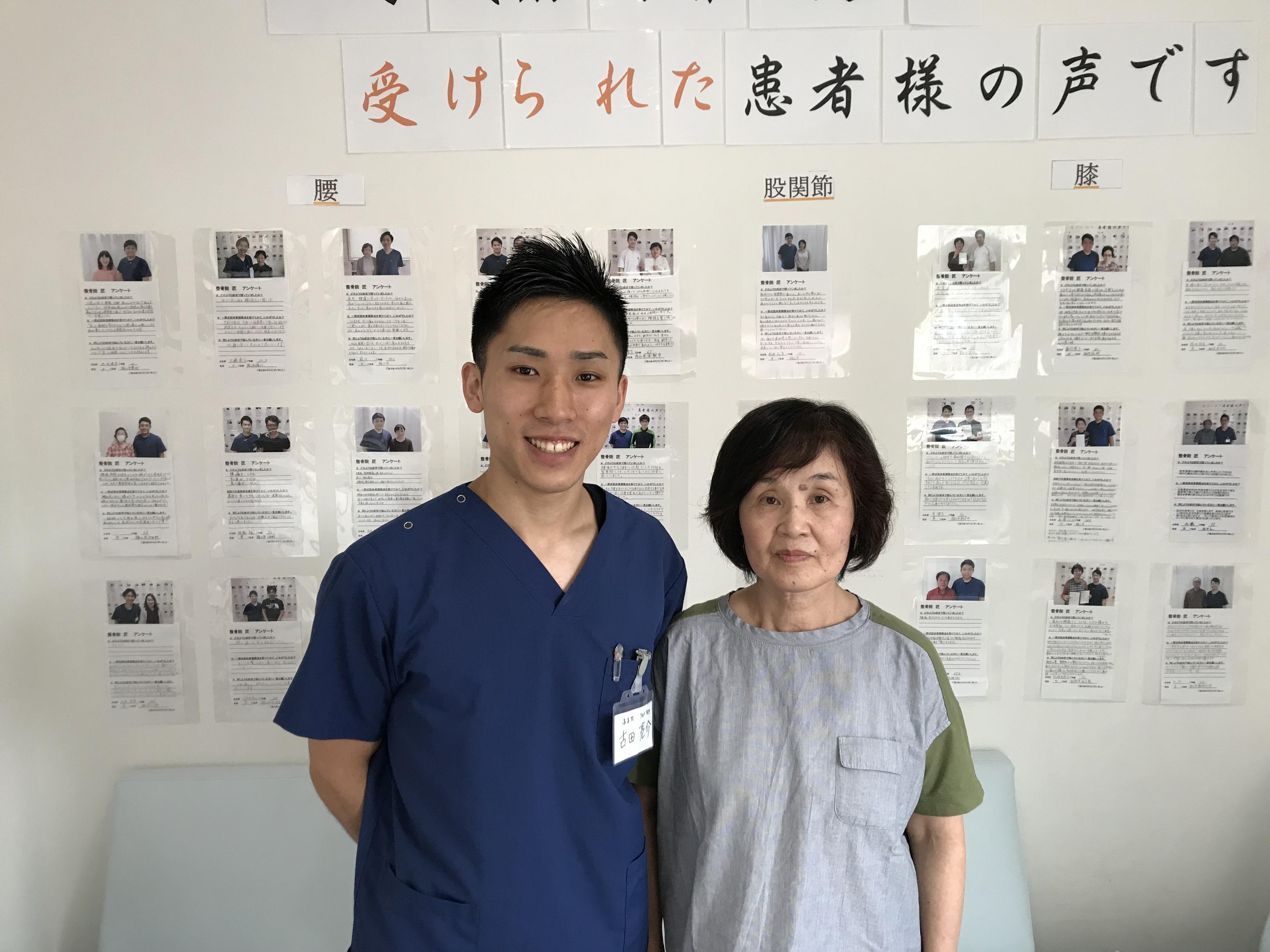 左足のしびれと痛みで10分も歩くことができず、買い物に行っても度々座り込んでいました。 最初は不安でしたが数か月通院する内に、足のしびれが軽くなり痛みも出たり、出なかったり症状を改善してもらえて今では痛み、しびれもほとんど出なくなりました。今は体のメンテナンスもお願いしています。 痛みで気持ちが落ち込んでしまいますが、先生方が元気な体になるように施術してくれます。 (佐藤 元三さん) ※効果には個人差があります |