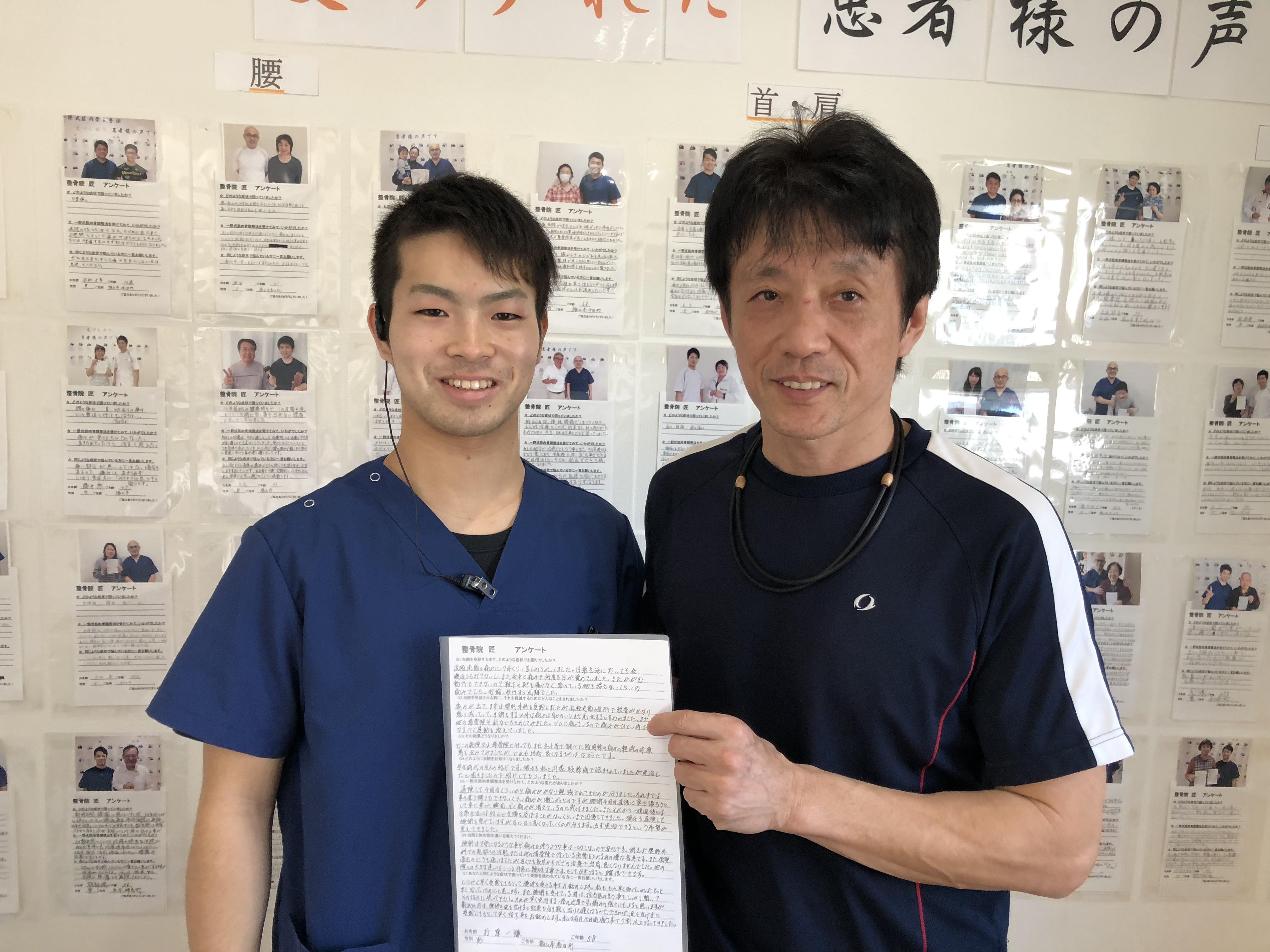 腰が痛くて5分以上立った姿勢を維持したり、約1キロ程で痛みが辛くなり歩けませんでした。 施術を受けるごとに、自分でも驚く程に腰が楽になり1キロ以上歩いても痛みなく歩けるようになりました! 痛みや痺れなどの症状が出てから施術を受けるというのも大事ですが、それ以前に痛みや痺れが出ないような状態をつくる為に地道に痛みや痺れがなくても身体のメンテナンスを行っていくことが本当に大切なんだと思いました。 (渡辺 成仁さん) ※効果には個人差があります |